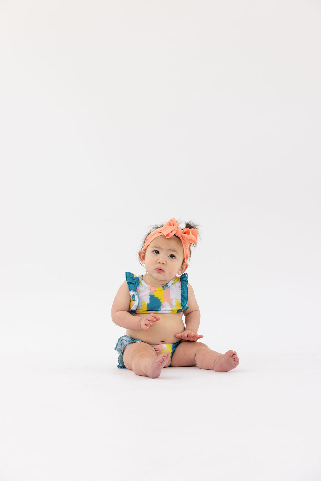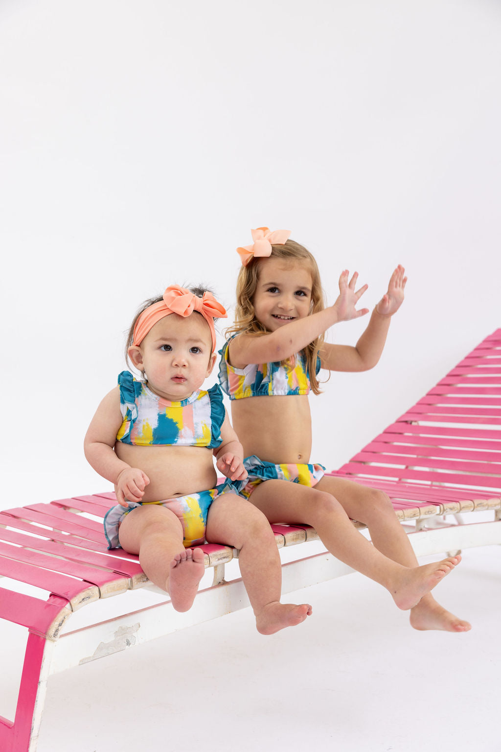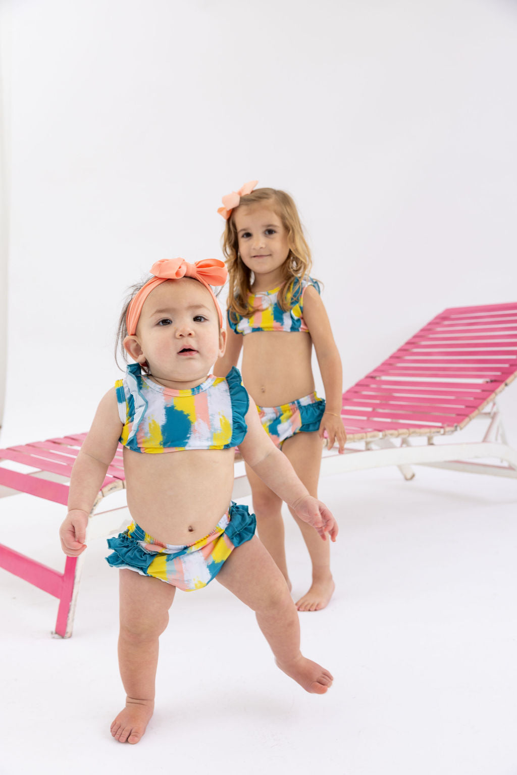 Discover the Bella Ruffle Swimsuit, a vibrant and playful bikini designed to make a splash! With its colorful patterns and adorable ruffle details, this swimsuit adds a touch of whimsy to your little one's summer wardrobe. Made from high-quality materials for comfort and durability, it's perfect for beach days and poolside fun. Get ready for endless smiles and unforgettable memories. Shop now and let your child shine in the Bella Ruffle Swimsuit!