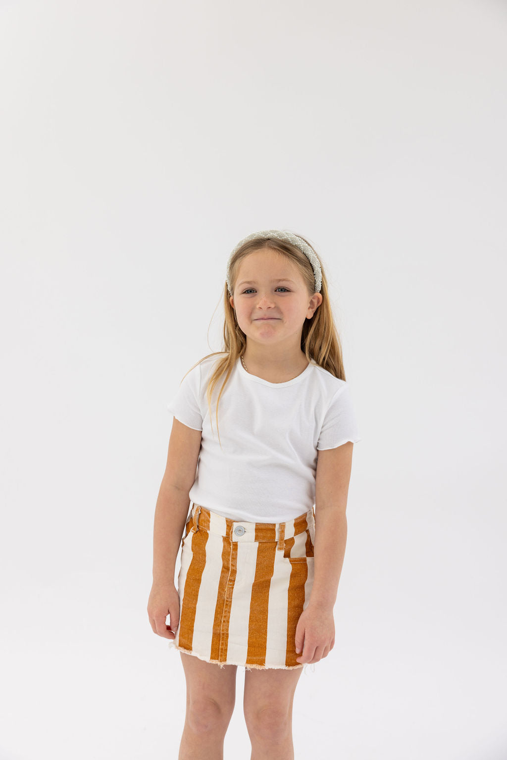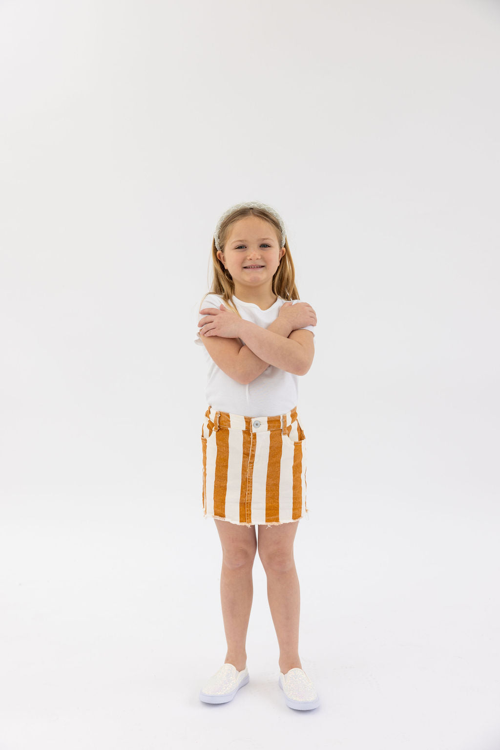 Discover the epitome of style and comfort with our 2023 Fall Collection's Rust Striped High-Waist Denim Skirt for Girls. This exquisite piece showcases the perfect synergy between timeless design and contemporary fashion, capturing the essence of autumn with its warm rust-striped denim. The high-waist silhouette adds a touch of elegance while ensuring a flattering fit, and the premium denim fabric guarantees both durability and comfort throughout the season's adventures. The playful rust-colored stripes infuse a unique charm, making this skirt a versatile addition to any outfit. From casual days to special occasions, this skirt transitions seamlessly, and its easy-care nature ensures long-lasting beauty. Elevate your little one's fall wardrobe with a touch of sophistication and playfulness – order now to experience the fusion of style and quality firsthand.