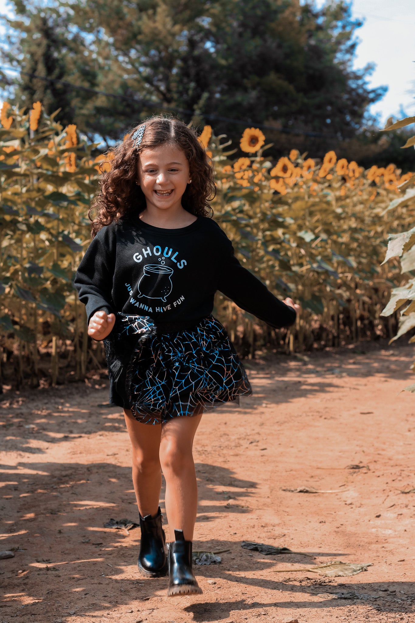 Unleash your young fashionista's inner ghoul and dive into a world of supernatural style with this bewitching sweatshirt. Crafted with meticulous attention to detail, it combines comfort and charm to create a wardrobe essential that's perfect for the Halloween season and beyond. The versatile design ensures that she stays cozy while reveling in the spooky spirit.